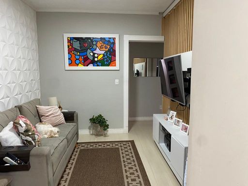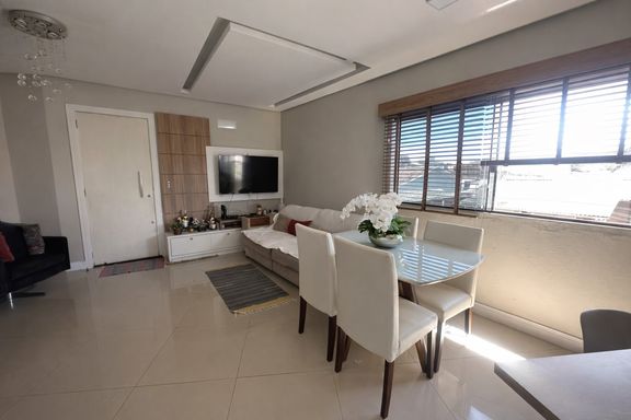 UM APARTAMENTO no primeiro andar, com 2 dormitórios, sala integrada com a cozinha, banheiro social, área de serviço e uma linda sacada!