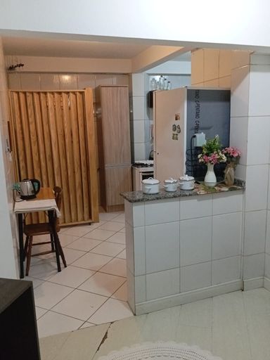 UM APARTAMENTO térreo com 1 dormitório, sala, cozinha, banheiro e área de serviço.