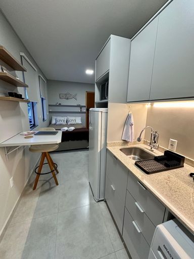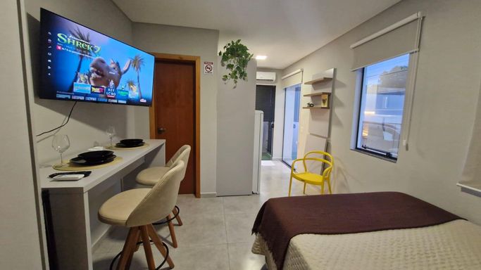 Totalmente mobiliado, o studio conta com ambiente integrado que otimiza cada espaço, ideal para quem busca praticidade no dia a dia — seja para morar sozinho ou ter um ponto estratégico na ilha.